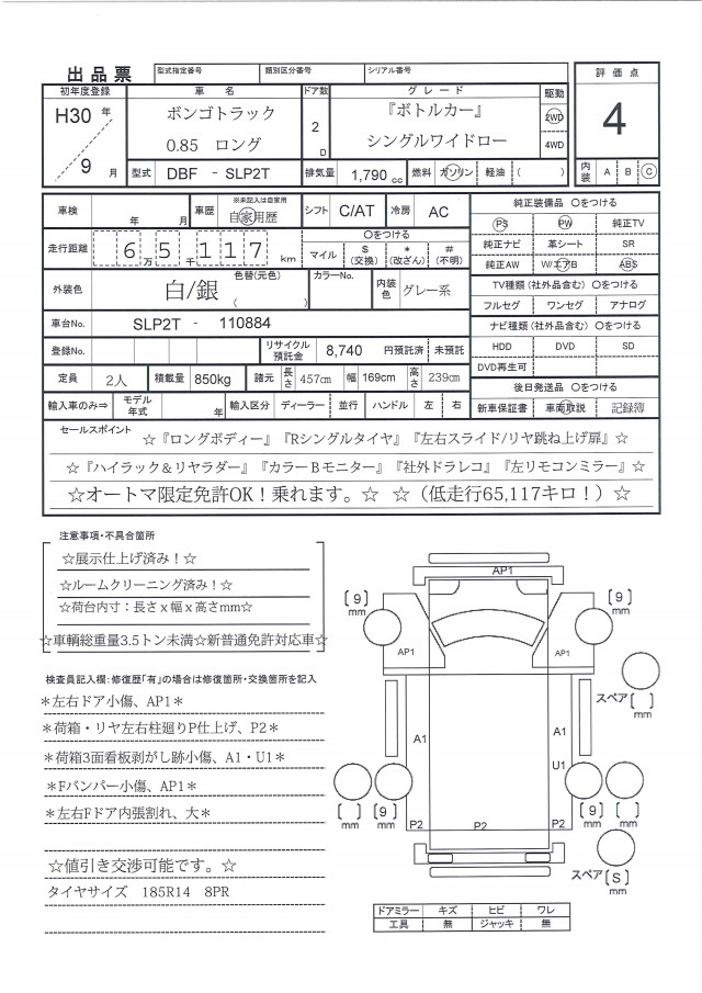 ☆H30年ボンゴT0.8t『ロング』シングルワイドロー『ボトルカー』左右スライド/リヤ跳ね上げ扉/ハイラック&リヤラダー☆(低走行65,117キロ!)『ダストBOX』『2輪台車ⅹ1』『カラーBモニター』『ドラレコ』『W/SRSエアバック&ABS』『左リモコンミラー』『キーレス』☆車輌総重量3.5トン未満☆新普通免許対応車☆オートマ限定免許OK!乗れます。☆遠方の方でも安心!ルームクリーニング済み!