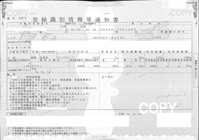 | 車検 | 抹消 |