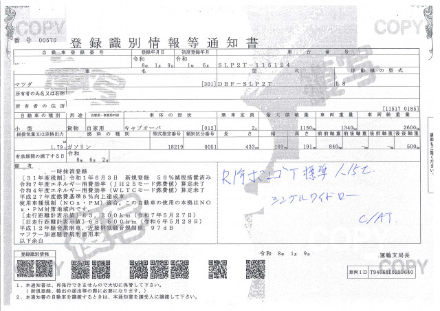| 車検 | 抹消 |