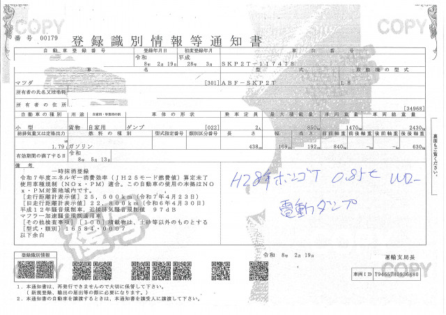 | 車検 | 抹消 |