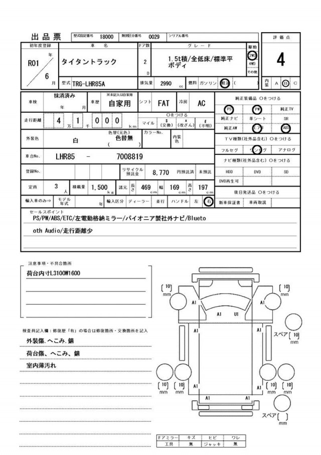 価格には保険料、税金(車両本体の消費税除)、リサイクル料金、リサイクル預託金相当額、登録、納車、陸送等に伴う費用等は含まれておりません。