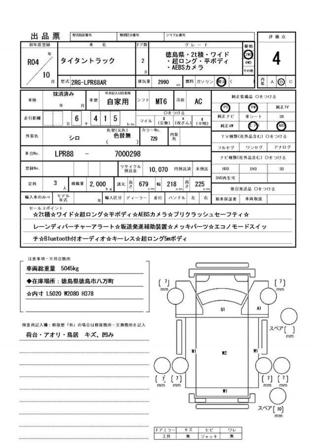 ☆2t積☆ワイド☆超ロング☆平ボディ☆AEBSカメラ☆プリクラッシュセーフティ☆レーンディパーチャーアラート☆坂道発進補助装置☆メッキパーツ☆エコノモードスイッチ☆Bluetooth付オーディオ☆キーレス☆超ロング5mボディ ☆荷台内寸 L5020 W2080 H378