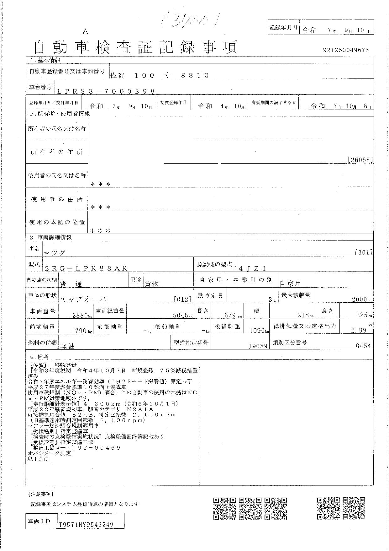 | 車検 | 抹消 |