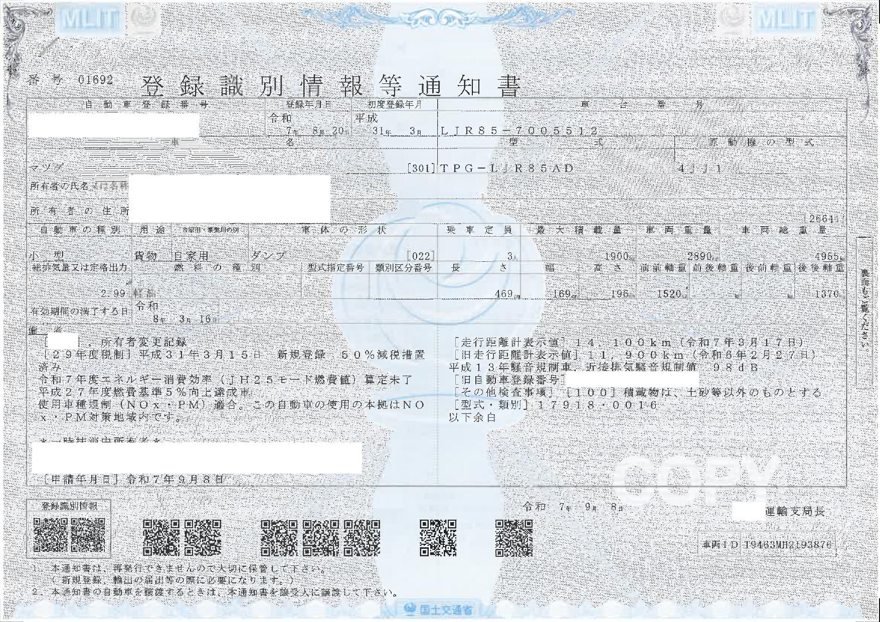 | 車検 | 抹消 |