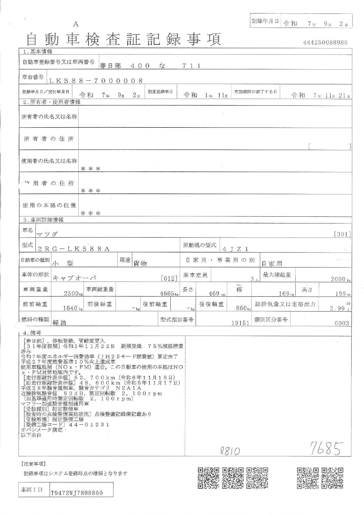 ※支払い価格は通常、2025年12月現在において、販売店住所の都道府県内登録(届出)で店頭納車の場合の価格となります。お客様の要望に基づくオプション等の費用、県外登録などをご希望の場合は別途店舗までお問合せください。