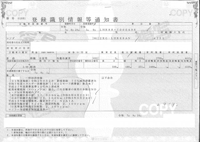 | 車検 | 抹消 |