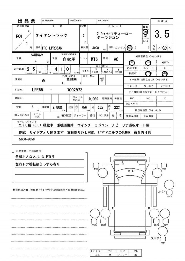 | 最大積載量 | 2,900(kg) |