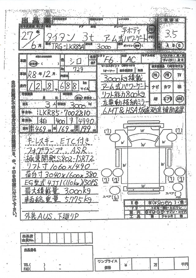 3t アーム式パワーゲート リフト能力800キロ 極東開発S802-1SRT2 6MT HSA キーレス ETC フォグライト ASR リフト寸106/149 荷台寸304/160/38 EG型式4JJ1(110kw)150PS 3.0ディーゼルターボ 最大積載量3000キロ 車両総重量5775キロ