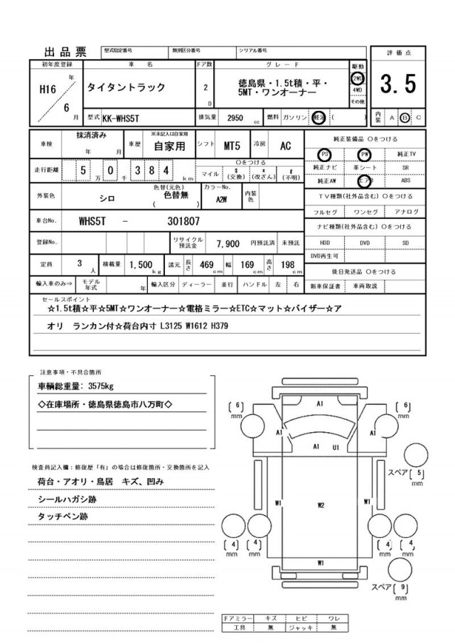 荷台・アオリ・鳥居 キズ、凹み・シールハガシ跡・タッチペン跡