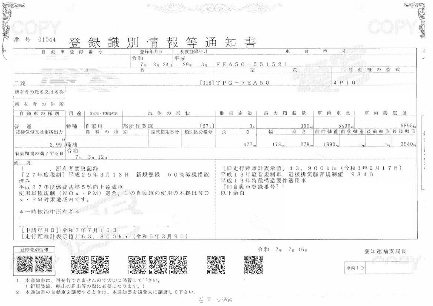 支払総額は愛知県内で登録の場合の金額です。ETCセットアップ費用は含まれていません。
