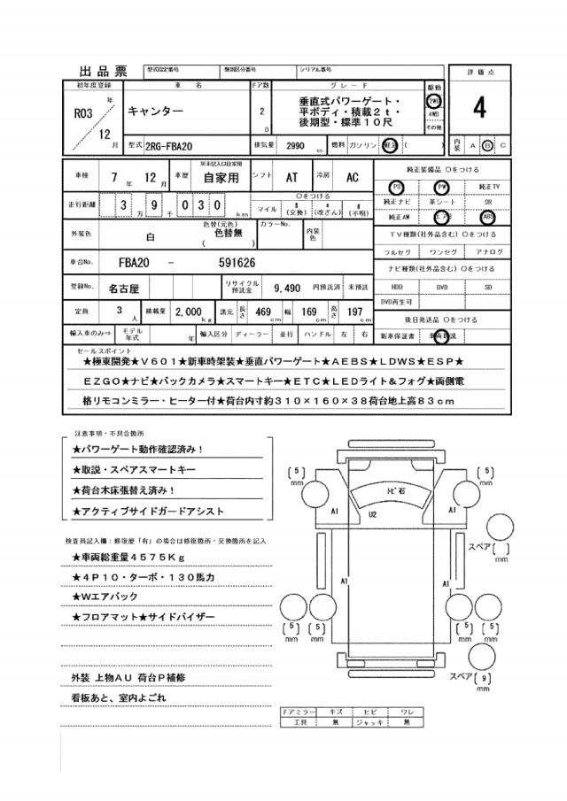 ★極東開発★V601★新車時架装★垂直パワーゲート★AEBS★LDWS★ESP★EZGO★ナビ★バックカメラ★スマートキー★ETC★LEDライト&フォグ★両側電格リモコンミラー・ヒーター付★荷台内寸約310×160×38荷台地上高83cm★パワーゲート動作確認済み!★取説・スペアスマートキー★荷台木床張替え済み!★アクティブサイドガードアシスト★車両総重量4575Kg★4P10・ターボ・130馬
