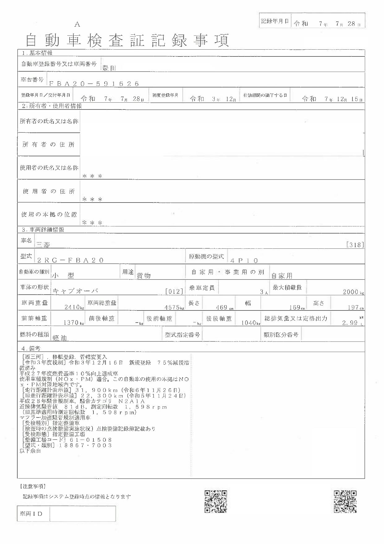 車検 | 車検有 (2025年12月) |