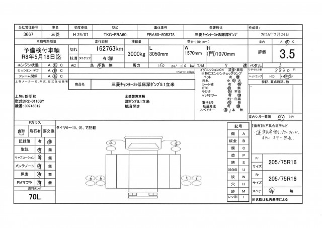 三菱ふそうキャンター 3t低床深ダンプ 新明和製 型式:DR2-0110SY 積載3000kg 容積5.1立米 観音扉 ETC付 150馬力 全塗装済 予備検付R8.5.18迄