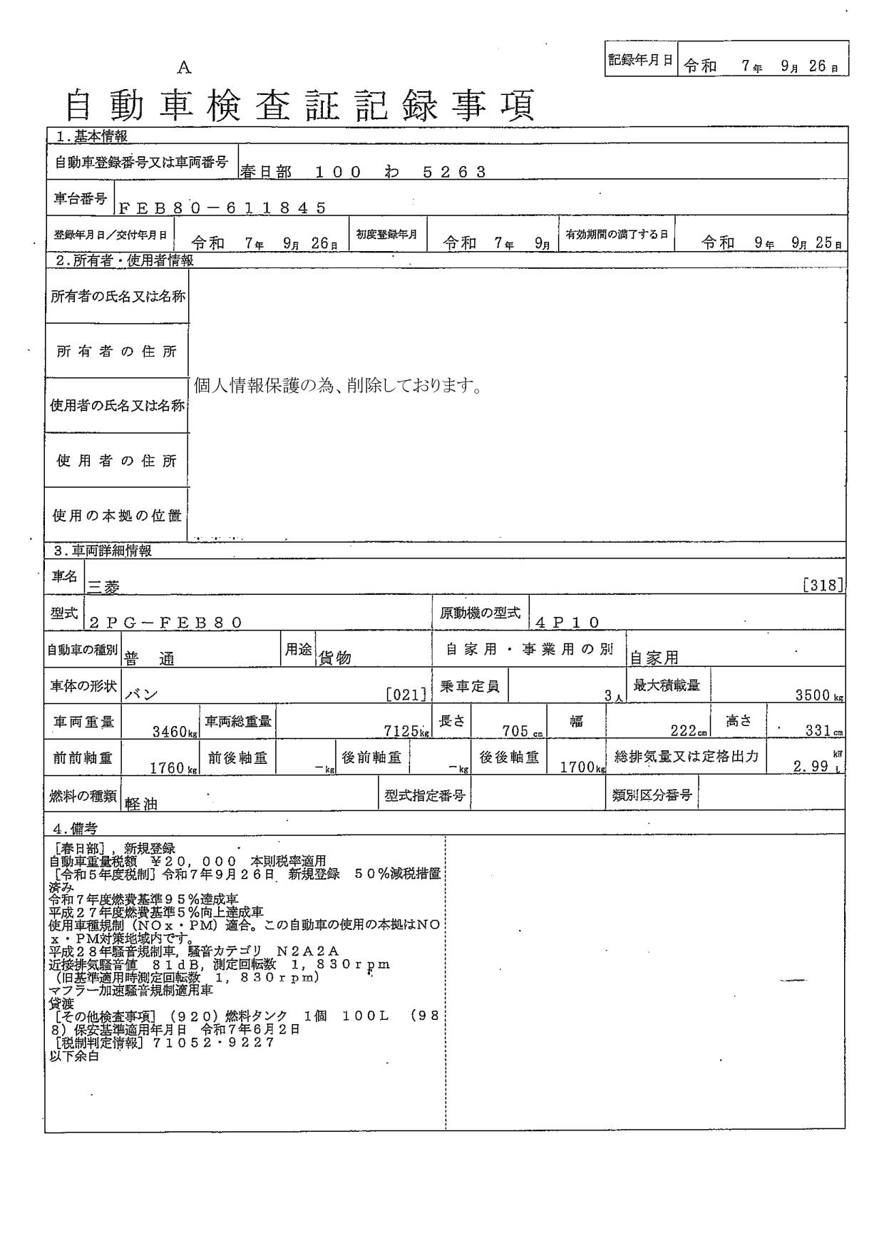 | 最大積載量 | 3,500(kg) |