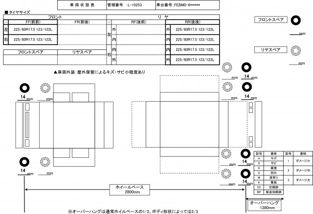▲車両外装:屋外保管によるキズ・サビ小程度有り