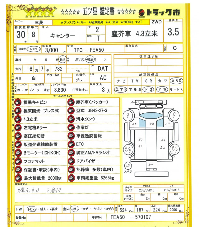 ★プレス式パッカー★極東開発★4.3立米★汚水タンク★標準キャビン★作業灯★高圧縮切替★左電格ミラー★坂道発進補助装置★車線逸脱警報★ETC★Bモニター★純正AM・FMラジオ★フロアマット★ドアバイザー★保証書・取説・記録簿多数(車内)★