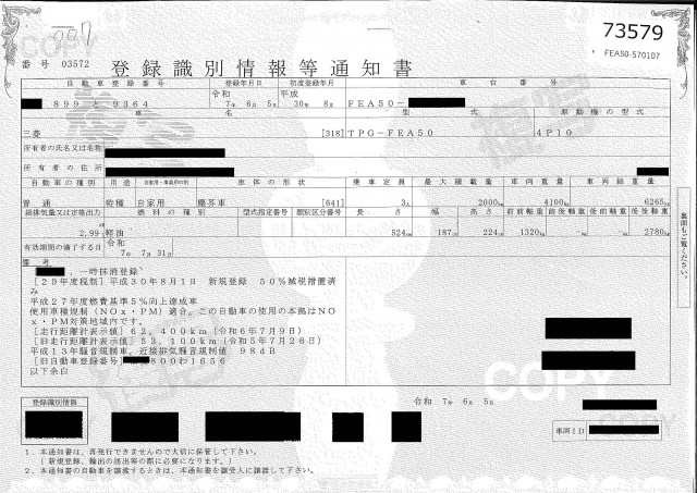 | 車検 | 抹消 |