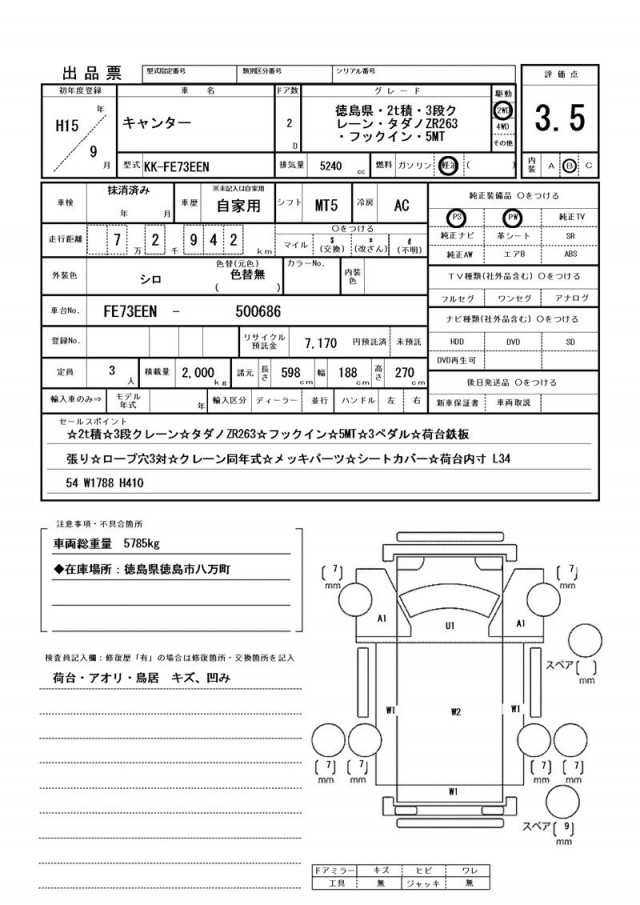 ☆2t積☆3段クレーン☆タダノZR263☆フックイン☆5MT☆3ペダル☆荷台鉄板張り☆ロープ穴3対☆クレーン同年式☆メッキパーツ☆シートカバー☆荷台内寸 L3454 W1788 H410