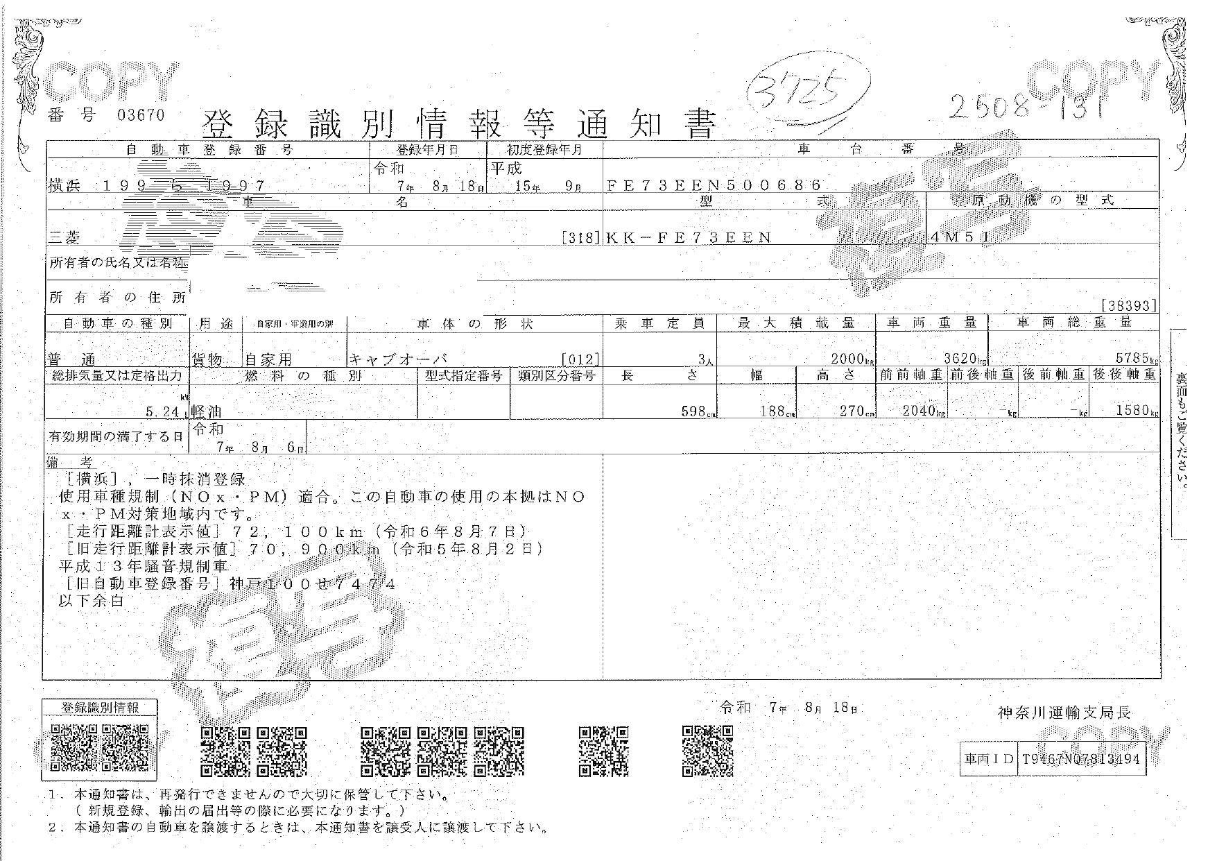 車検 | 抹消 |