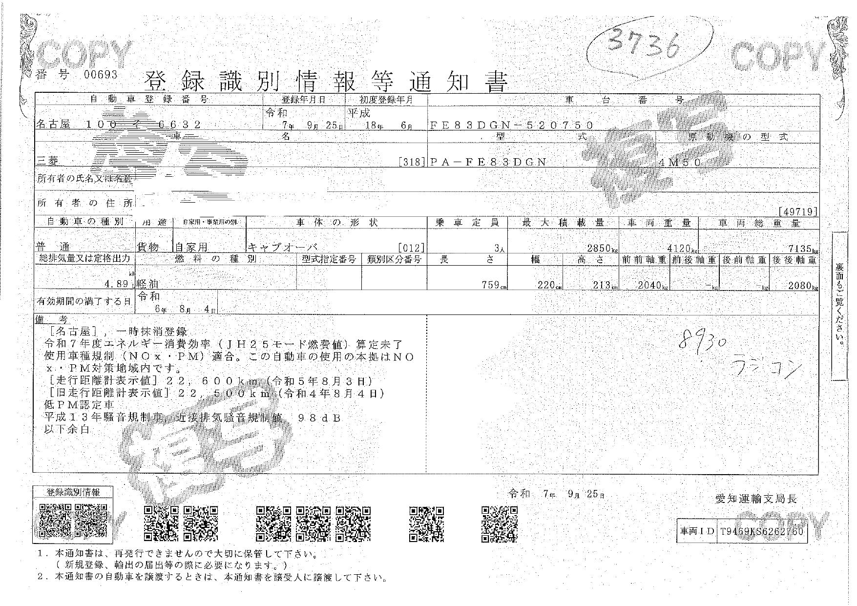 キャビン・荷台 キズ、サビ有り・シャーシ ペイント済