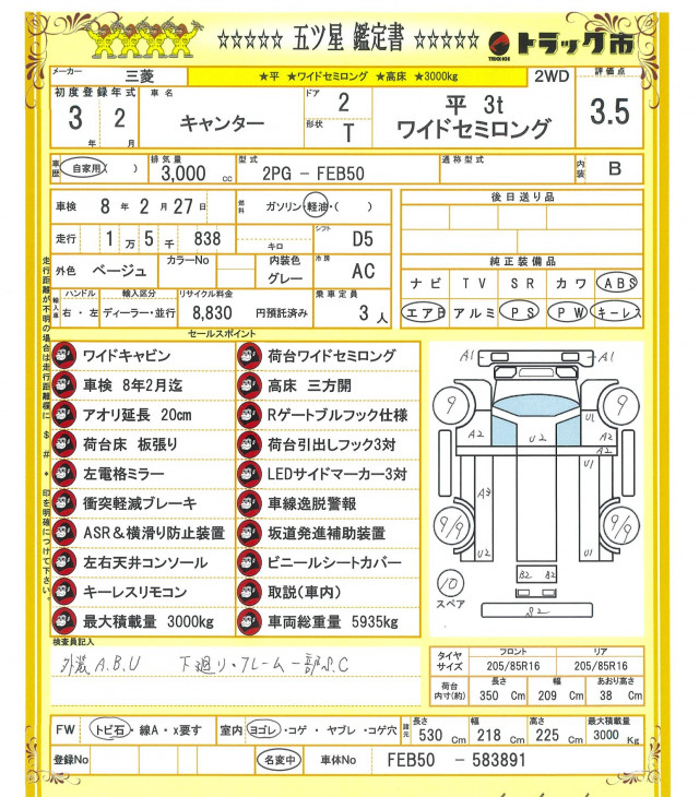 ★平ボディー★ワイドキャビン★荷台ワイドセミロング★高床★3000kg★三方開★アオリ延長20cm★荷台床板張り★Rゲートブルフック仕様★荷台引出フック3対★LEDサイドマーカー3対★左電格ミラー★衝突被害軽減ブレーキ★坂道発進補助装置★車線逸脱警報装置★ASR&横滑防止装置★左右天井コンソール★キーレス★取説★