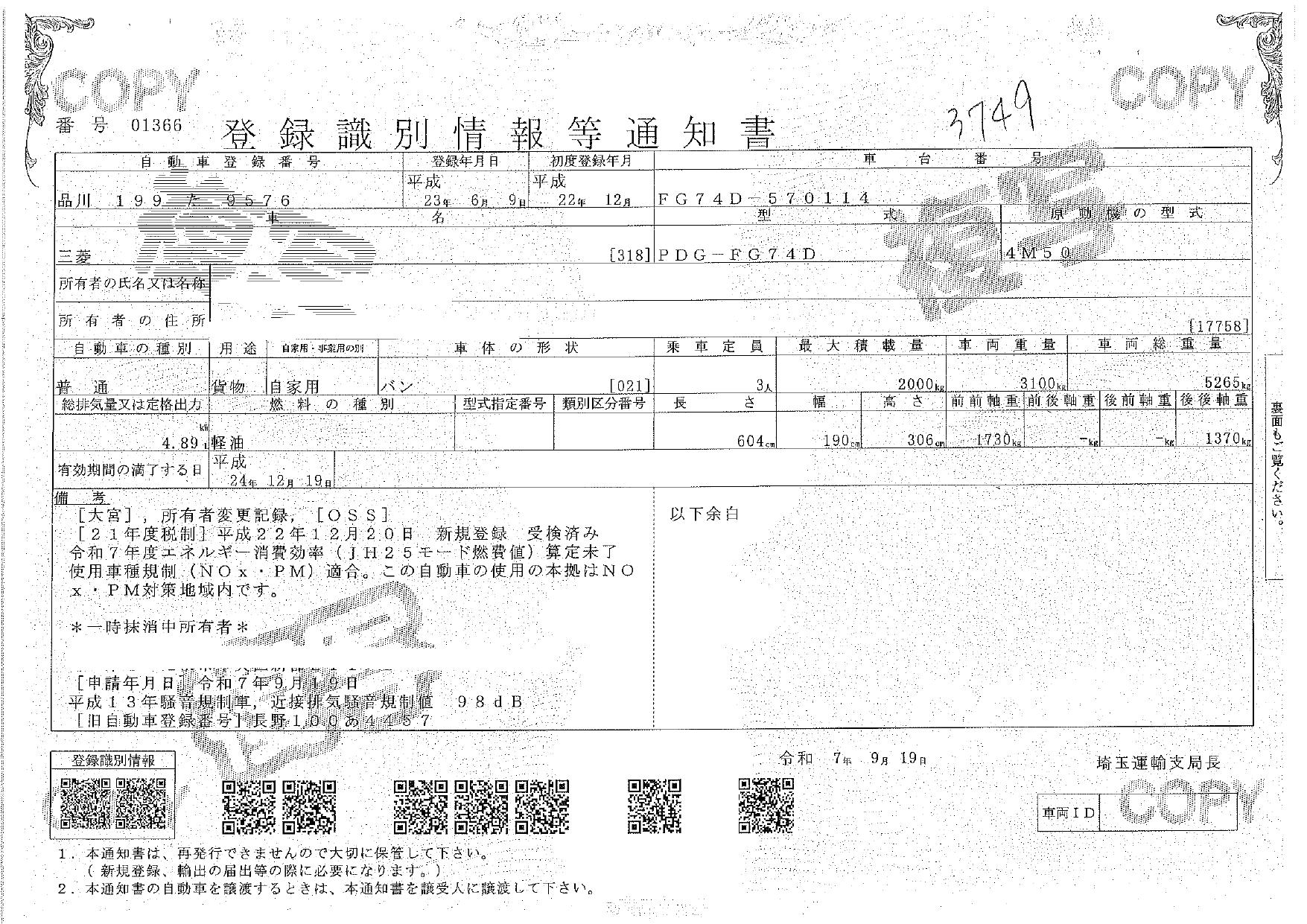 車検 | 抹消 |