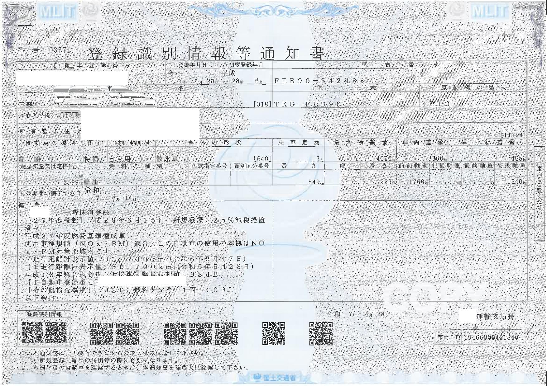 ※抹消車両は、登録時最大積載量が減トンされる可能性が御座います。