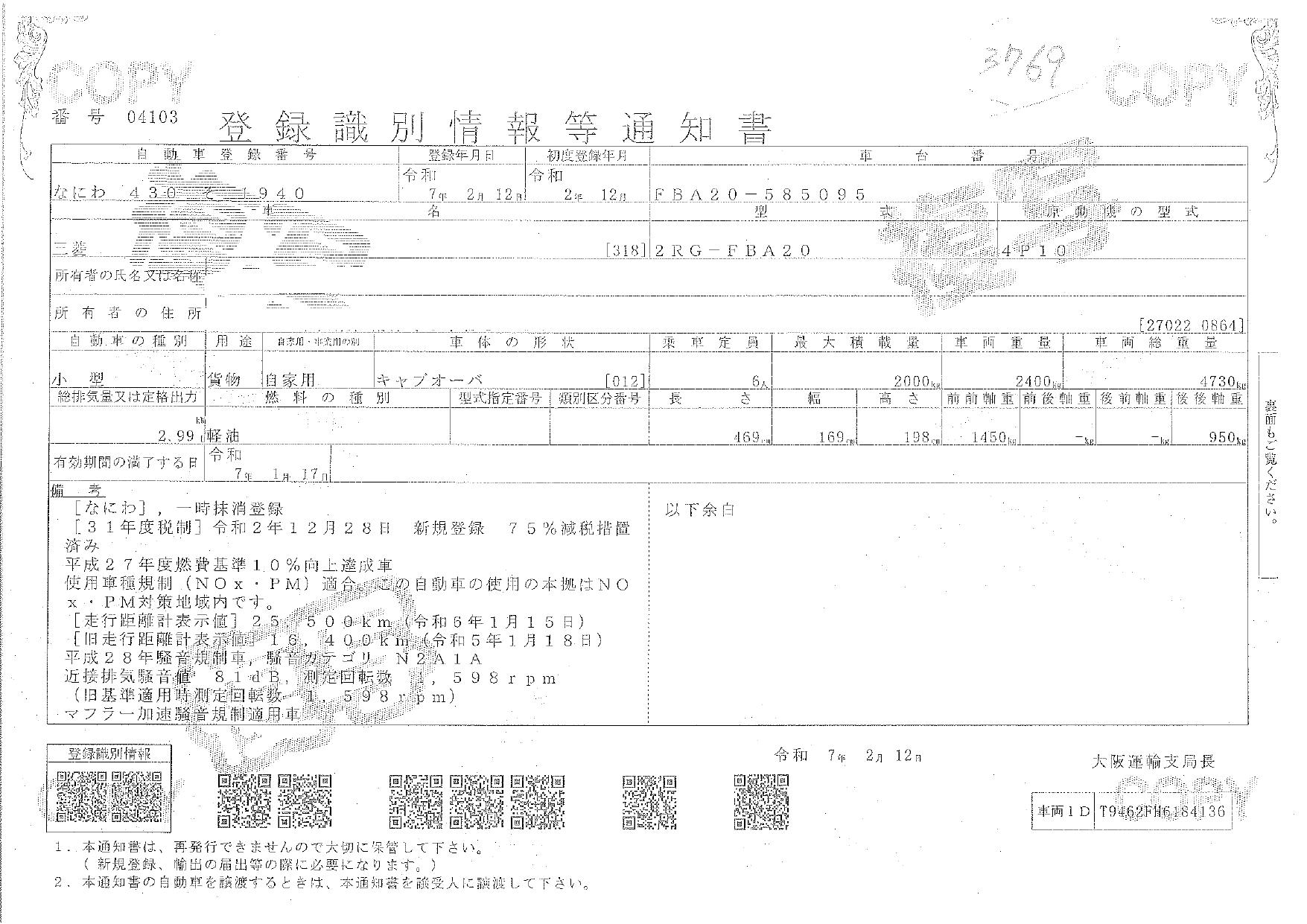 ドラレコ SD欠・荷台・キャビン キズ、凹み有り