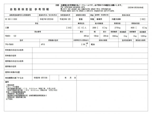 | 車検 | 抹消 |