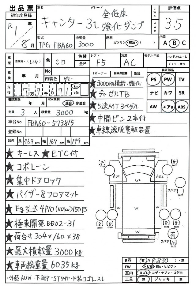 外装AUW 下廻りP STタイヤ 内装ヨゴレ、スレ