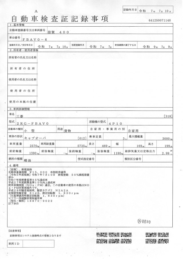 | 車検 | 車検有 (2027年7月) |