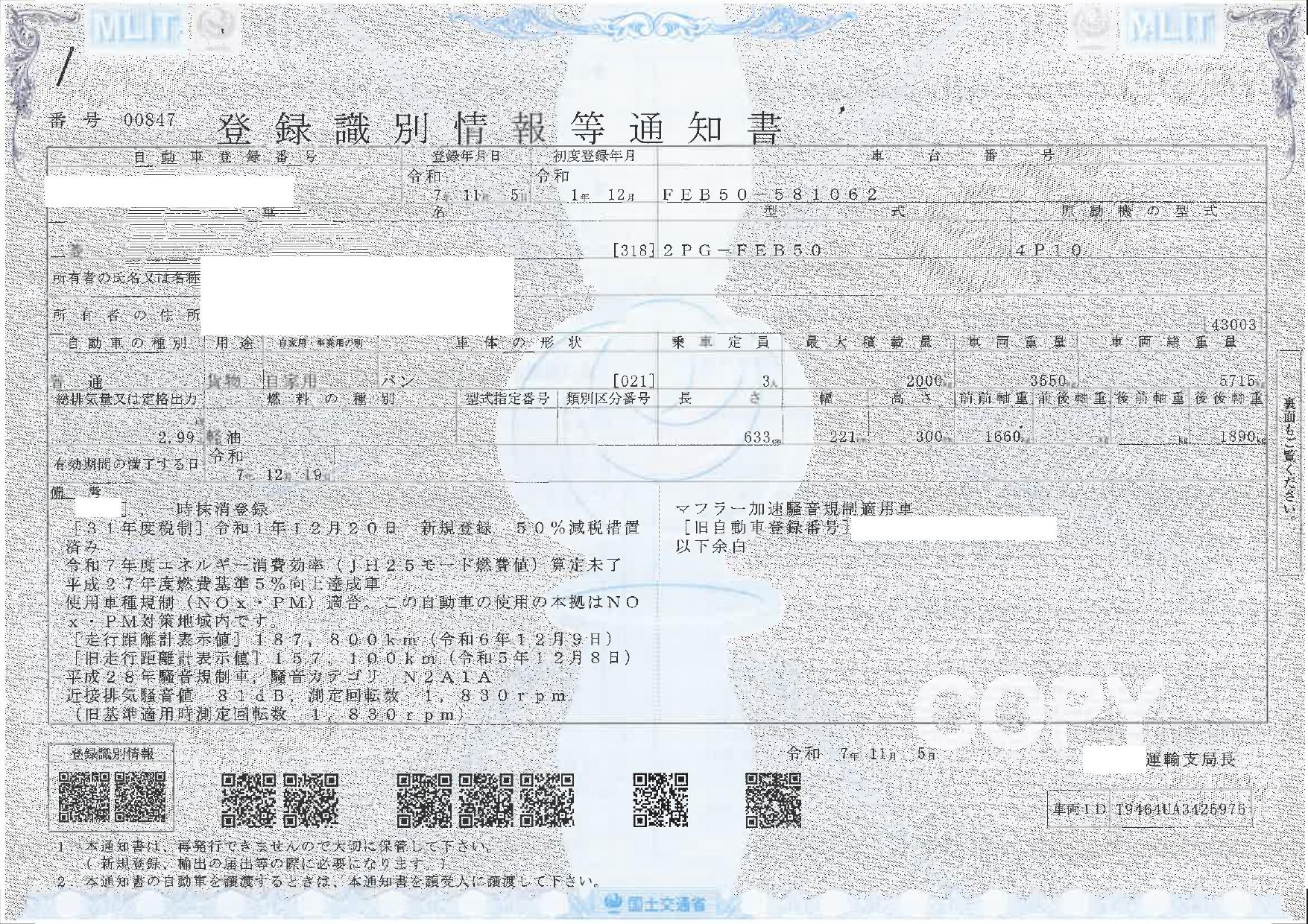 ※抹消車両は、登録時最大積載量が減トンされる可能性が御座います。