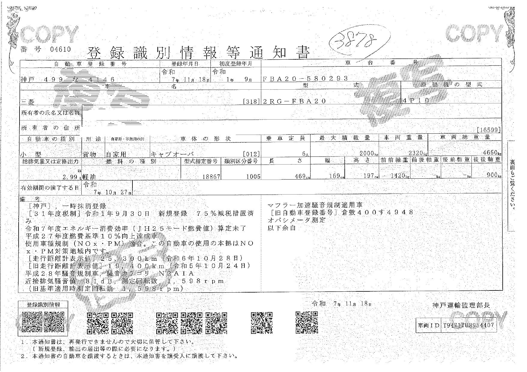 | 車検 | 抹消 |