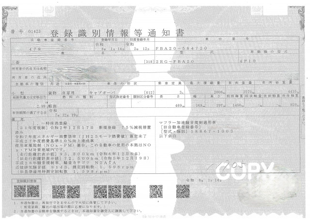 | 車検 | 抹消 |