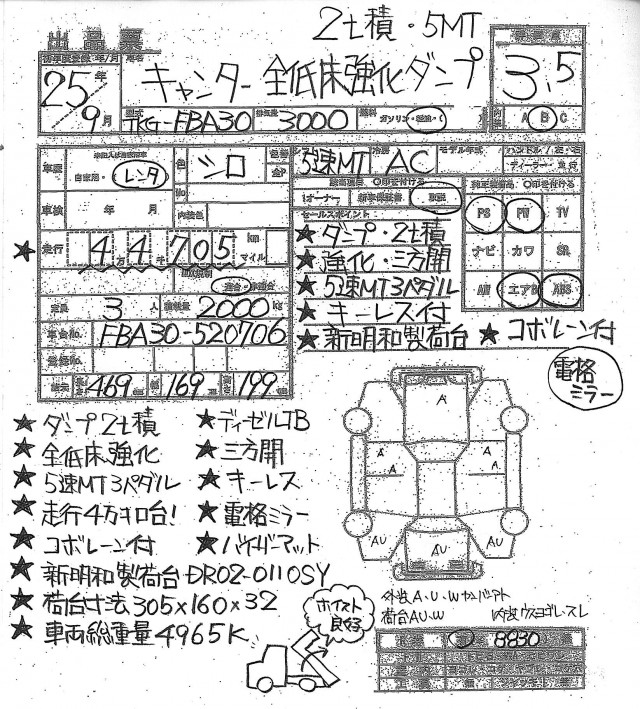 ★ダンプ ★2トン積 ★ディーゼルTB ★全低床強化三方開 ★5速MT3ペダル ★キーレス ★コボレーン付 ★新明和製荷台DR02-0110SY ★電格ミラー ★バイザーマット ★荷台寸法305-160-32 ★車両総重量4965K