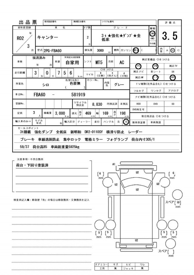 3t積載 強化ダンプ 全低床 新明和 DR2-0110SY 横滑り防止 レーダーブレーキ 車線逸脱防止 集中ロック 電格ミラー フォグランプ 荷台内寸305/159/37 荷台高85 車両総重量5925㎏