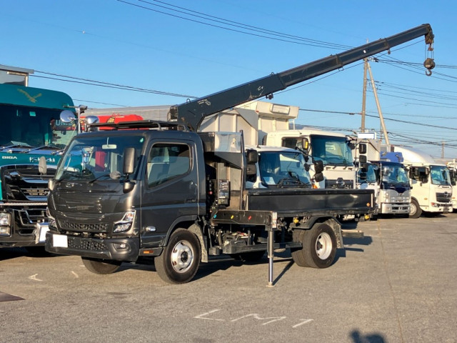 ★令和7年式/三菱ふそうキャンター/カスタム仕様 ★ワイド幅/超ロング/全低床/3.7トン積載/175馬力! ★古河ユニック製/G-FORCE SAFETY/URG294AWRA1 ★警報仕様/RA1(ML警報型)/超ワイド角足アウトリガ! ★4段ブーム/2.9t吊り/荷重表示付ラジコン/高さ制限装置 ★木製あおり3方開/床板張り/鳥居一部板張り/4.39mボディ