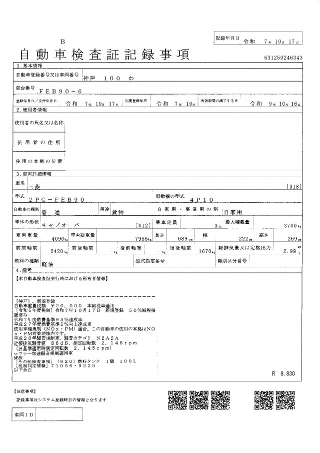 | 車両総重量 | 7,955kg |