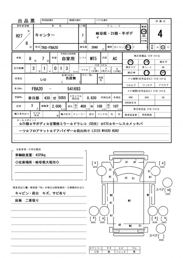 キャビン・荷台 キズ、サビ有り・床板 二重張り