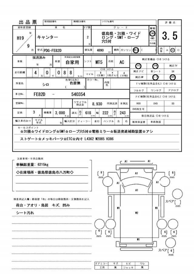☆3t積☆ワイドロング☆5MT☆ロープ穴5対☆電格ミラー☆坂道発進補助装置☆アシストゲート☆メッキパーツ☆ETC☆内寸 L4362 W2085 H386