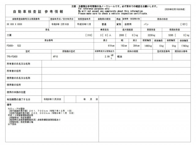 | 車検 | 車検有 (2026年11月) |