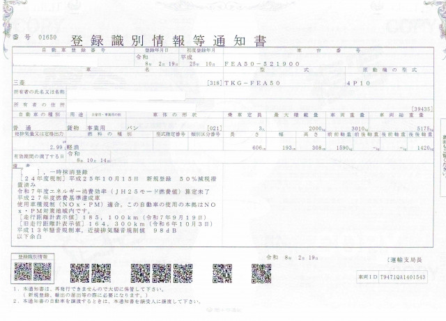 | 車検 | 抹消 |