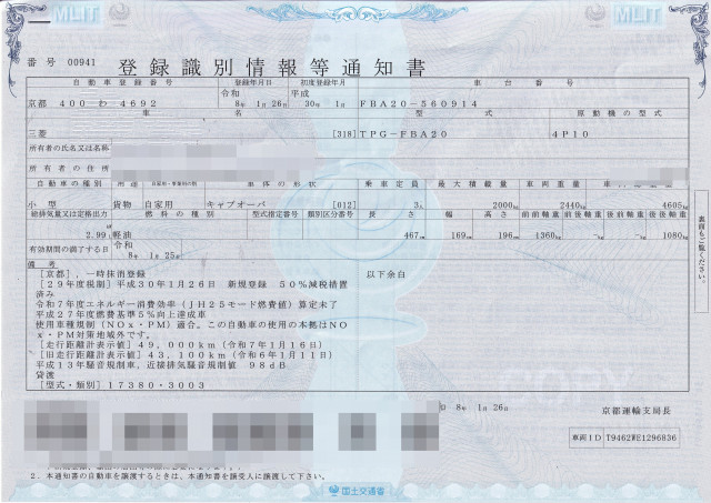 | 車検 | 抹消 |