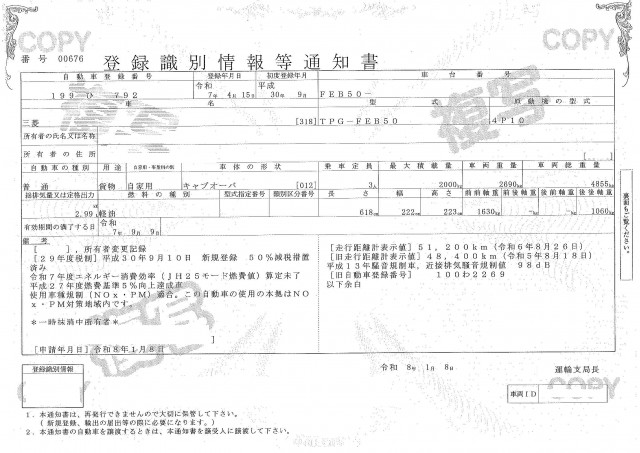 | 車検 | 抹消 |