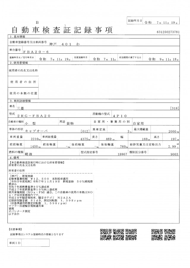 | 車検 | 車検有 (2027年11月) |