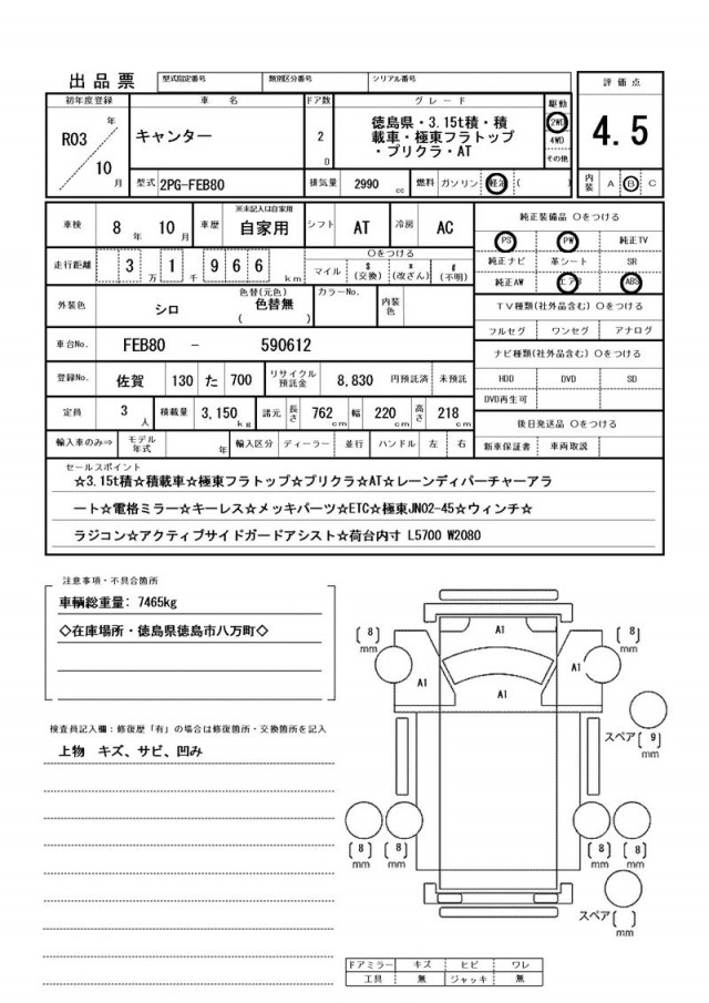 価格には保険料、税金(車両本体の消費税除)、リサイクル料金、リサイクル預託金相当額、登録、納車、陸送等に伴う費用等は含まれておりません。