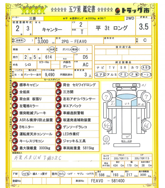 ☆平ボディー☆標準ロング☆全低床☆三方開☆左右アオリバランサー☆荷台床板張り☆衝突軽減ブレーキ☆坂道発進補助装置☆車線逸脱警報☆ASR&横滑り防止装置☆バックモニター☆ドライブレコーダー☆LED作業灯☆Wエアバック☆左電格ミラー☆キーレス☆ETC☆3000kg