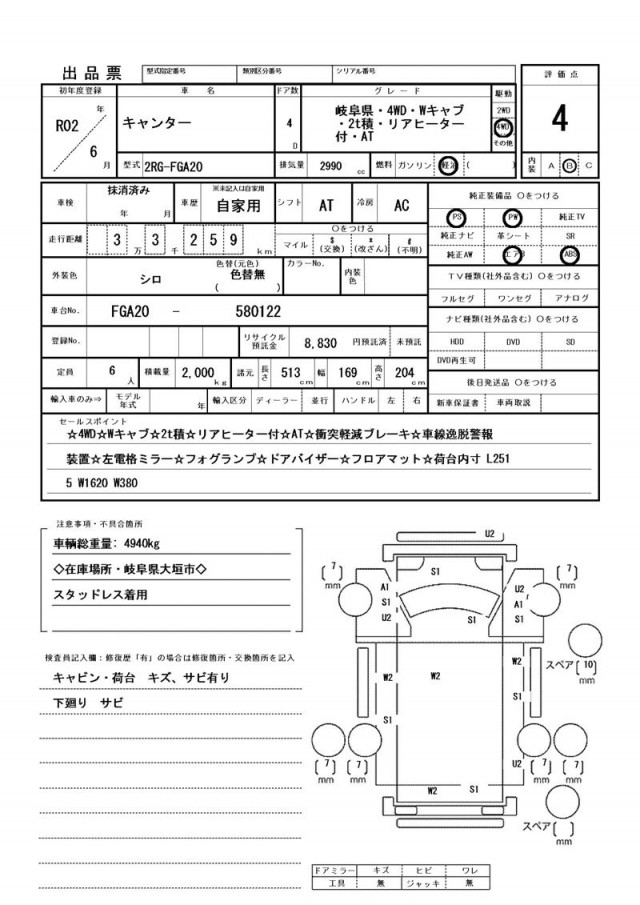 キャビン・荷台 キズ、サビ有り・下廻り サビ