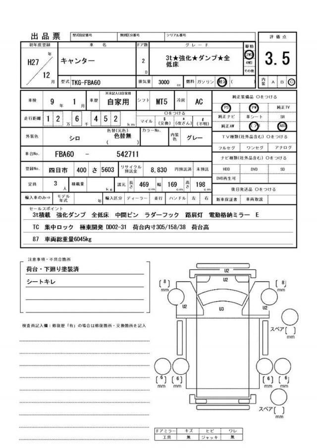 3t積載 強化ダンプ 全低床 中間ピン ラダーフック 路肩灯 電動格納ミラー ETC 集中ロック 極東開発 DD02-31 荷台内寸305/158/38 荷台高87 車両総重量6045kg
