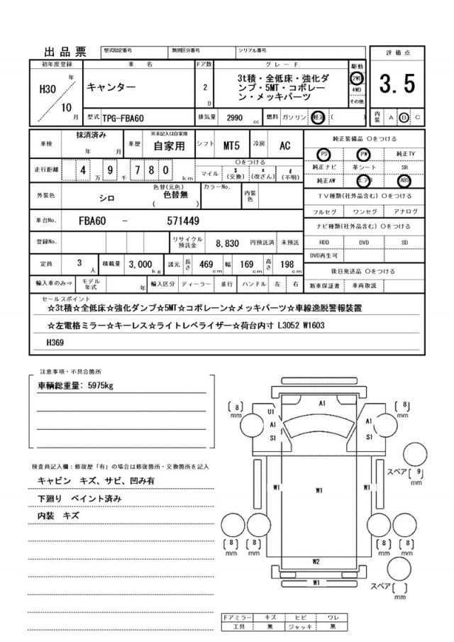 キャビン キズ、サビ、凹み有・下廻り ペイント済み・内装 キズ